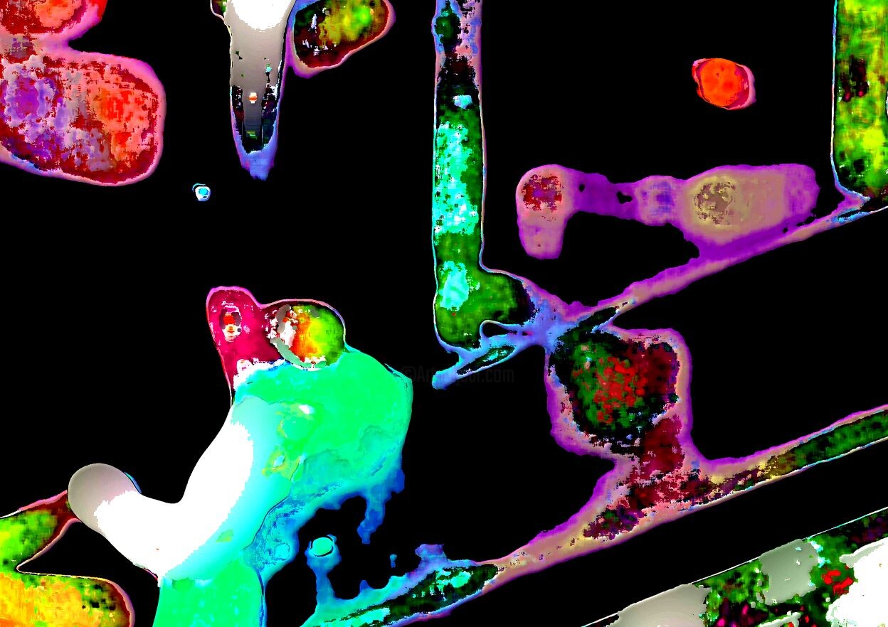 Im digitalen Bereich bearbeite ich mit unterschiedlichsten Techniken von mir erstellte Fotos: Durch Überlagerungen einerseits, komplettes digitales Übermalen andererseits entstehen auf diese Art meist semiabstrakte/semifigurative Bilder, die ich i.d.R. auf Papier, Acryl oder Alu-Dibond ausdrucken lasse.