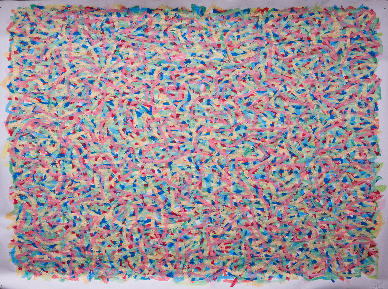 Görsel sanatlardaki pratiğim her zaman vardı, yazı da öyle, ama bazen dönemsel olarak, bazen de düzensiz olarak, daha yoğun bir şekilde gerçekleşiyor. Bir zincir veya çok şekilli ve çok renkli bir çelenk gibi, halka halka, öğe öğe açılıyor. Daha sonra bıraktığım yere geri dönüyorum ve pratiğimi başka yollara taşıyarak ilerliyorum, her zaman keşfetme ve deneme kaygısıyla.
