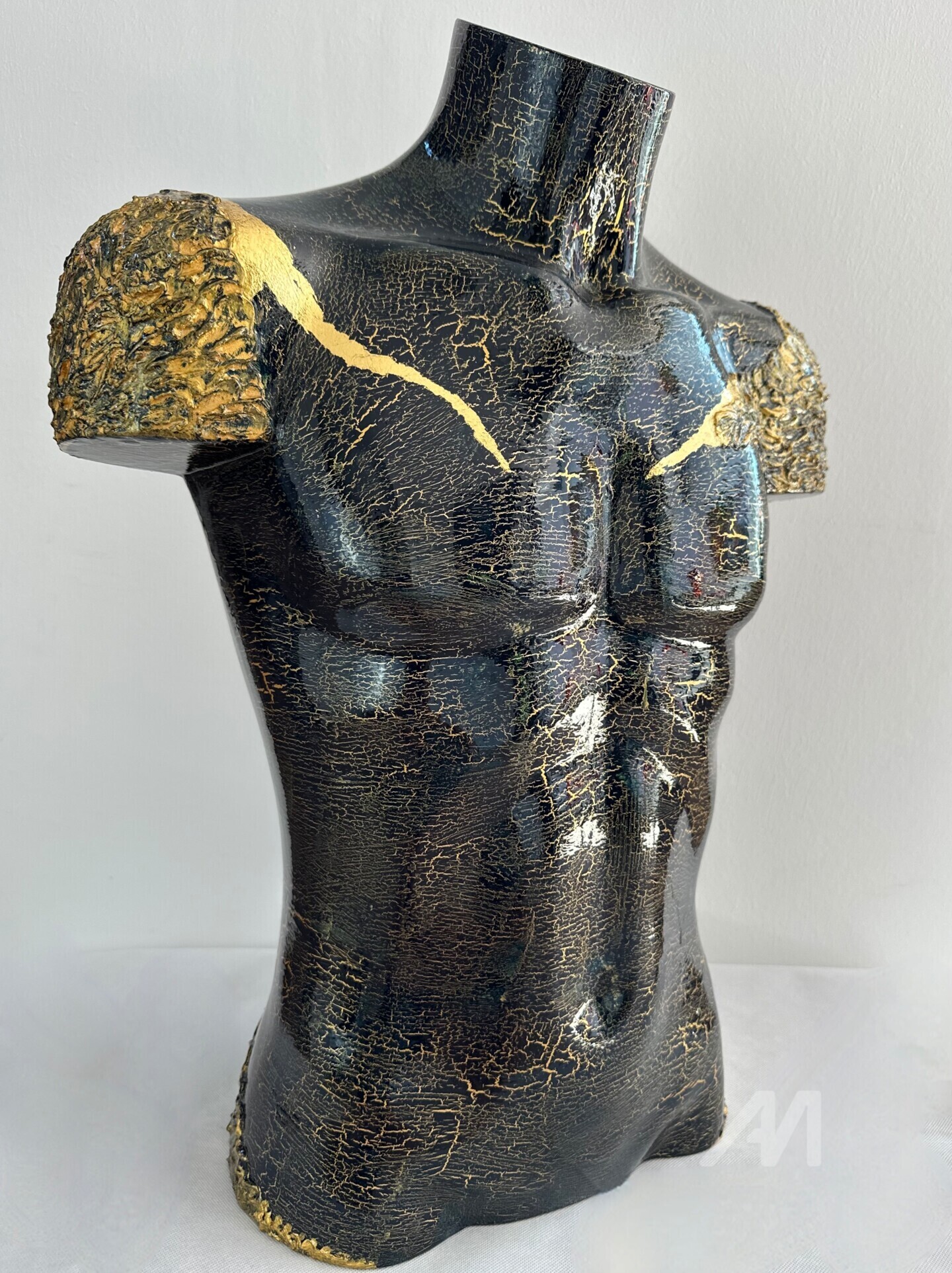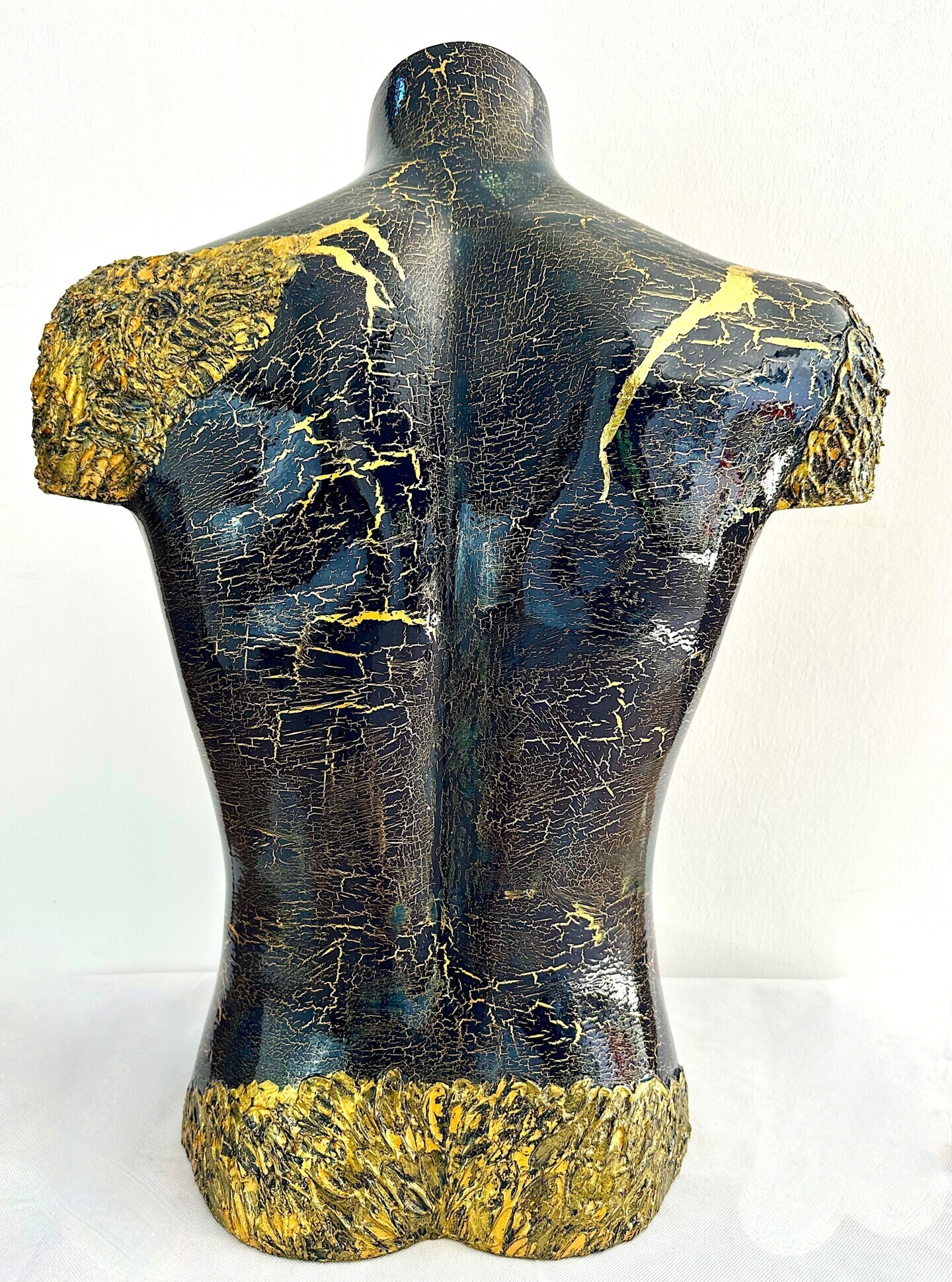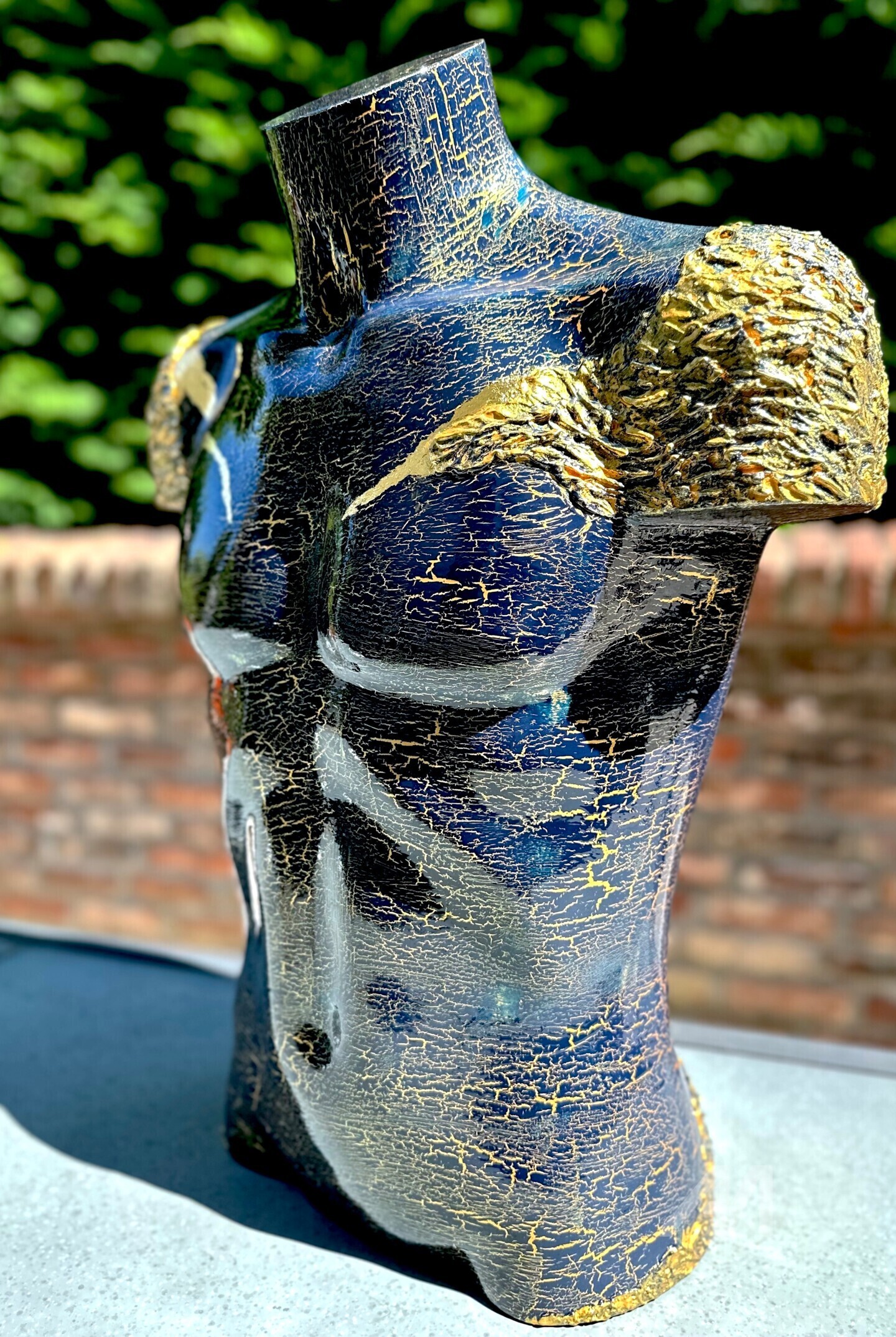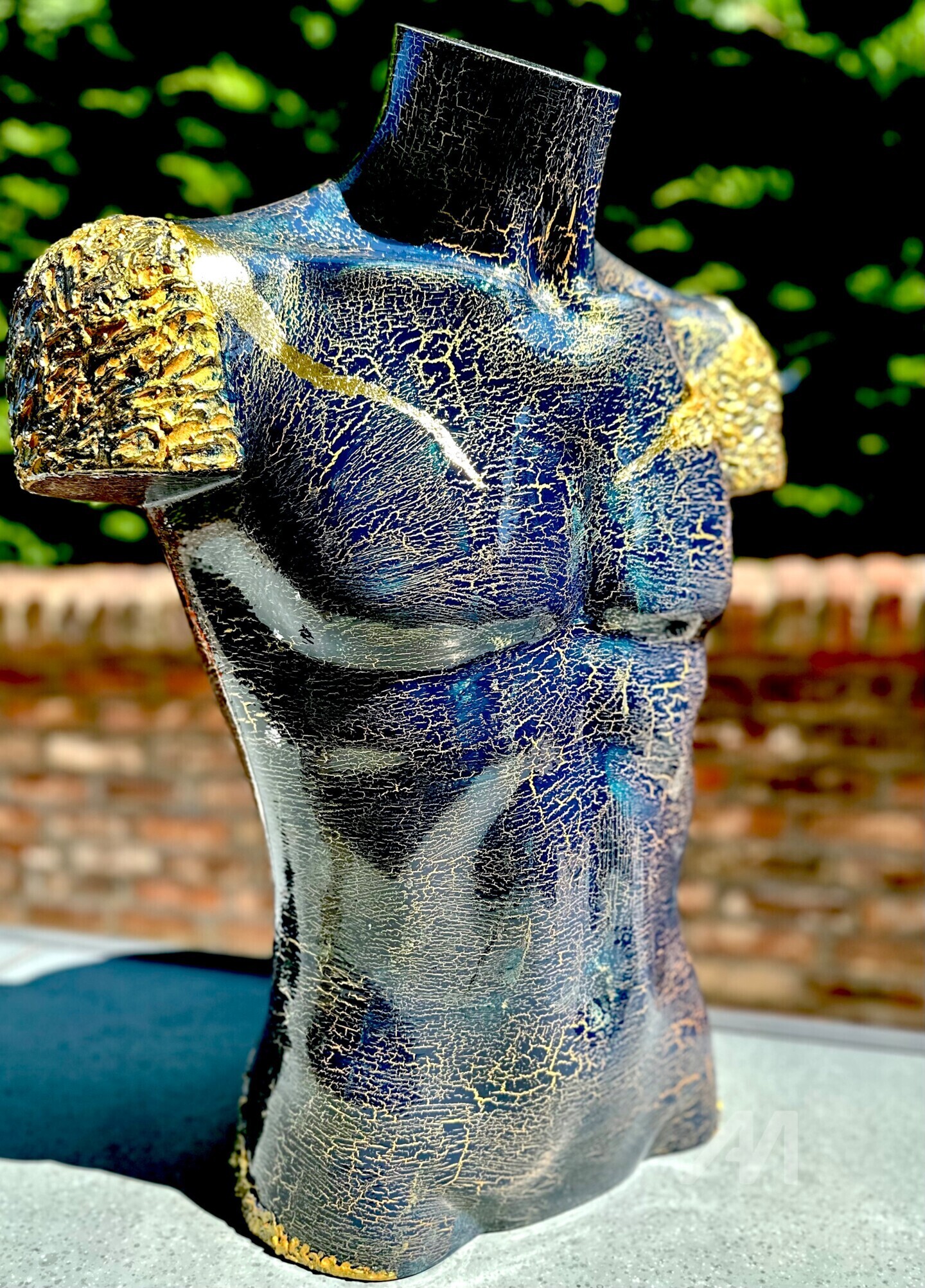 Kriegerfigur Stärke & Verletzlichkeit Würde & Fragilität Resilienz Transformation Heilung Vergänglichkeit Innere Ruhe Meditation & Reflexion Erfahrung Als Rüstung Überleben & BeständigkeitTiefe Blautöne Goldakzente Glänzende Oberfläche Lichtreflexe Riss- Oder Narbenstruktur Figurative Skulptur Kontrast Zwischen Kühlem Blau Und Warmem Gold Hochglanzfinish Symbolische FarbgestaltungUpcycled Mannequin Recycelter Schaufenster-Torso Handbemalt Acrylfarben Goldblatt / Vergoldung Mixed Media Skulptur Nachhaltige Materialien Moderne Figurative SkulpturUnikat Originalkunstwerk Limitierte Edition Signierte Skulptur Statement Piece Galeriekunst Sammlerstück Emotionale Skulptur Investitionskunst AusstellungsstückMore (Renate Molsner) Deutsche Künstlerin Zeitgenössische Skulptur Urban-Nature-Fusion Köln & Mallorca Berlin / Barcelona / Beijing Inspiriert Figurative Transformation Feminine Themen In Skulptur Kunst Zwischen Mode & Street Art