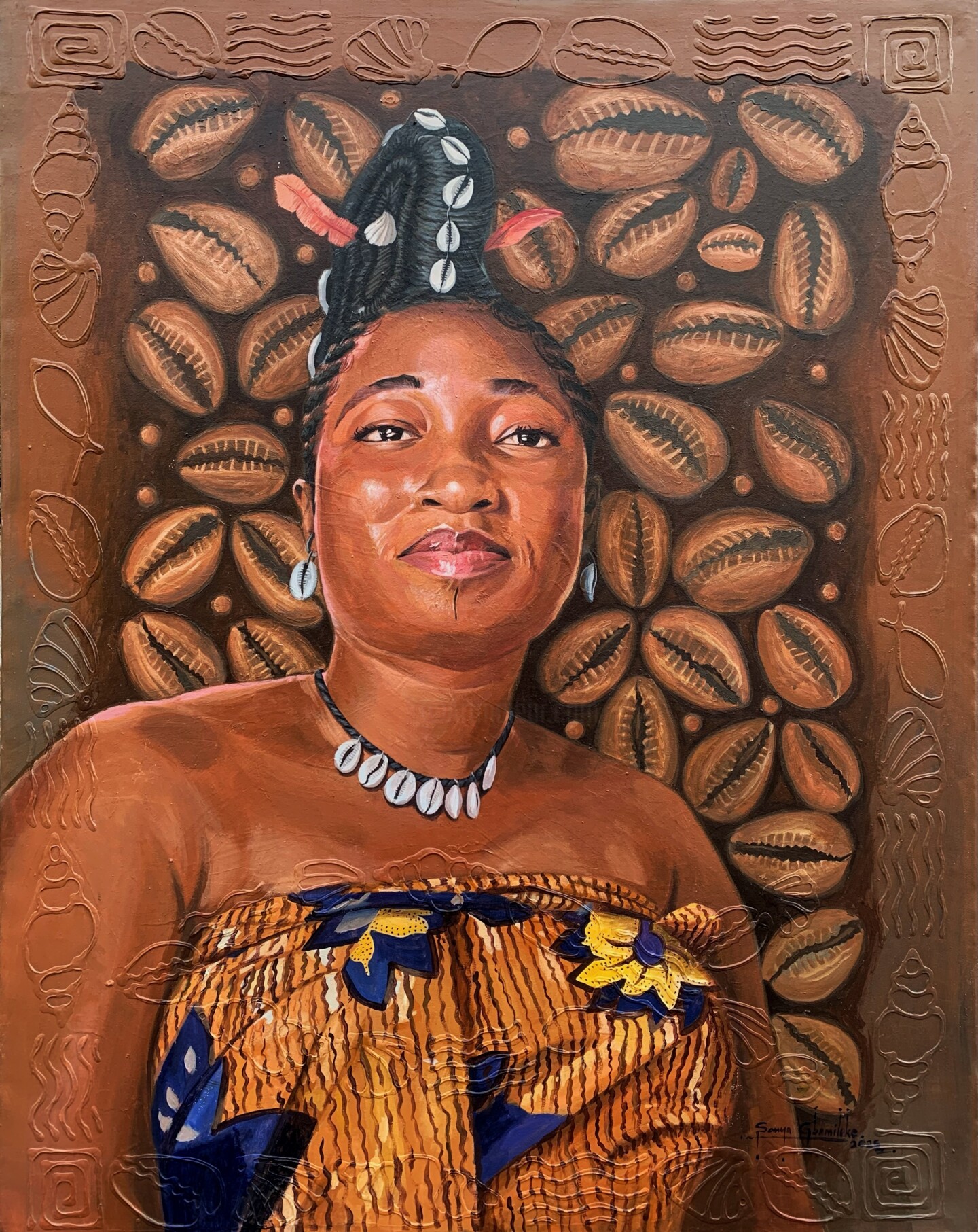 The mother and child theme is a recurring motif in Sanya Gbemilek work, symbolizing the eternal cycle of life, love, and nurturing. Her art invites the viewer to contemplate the interconnectedness of generations and the enduring power of maternal love.