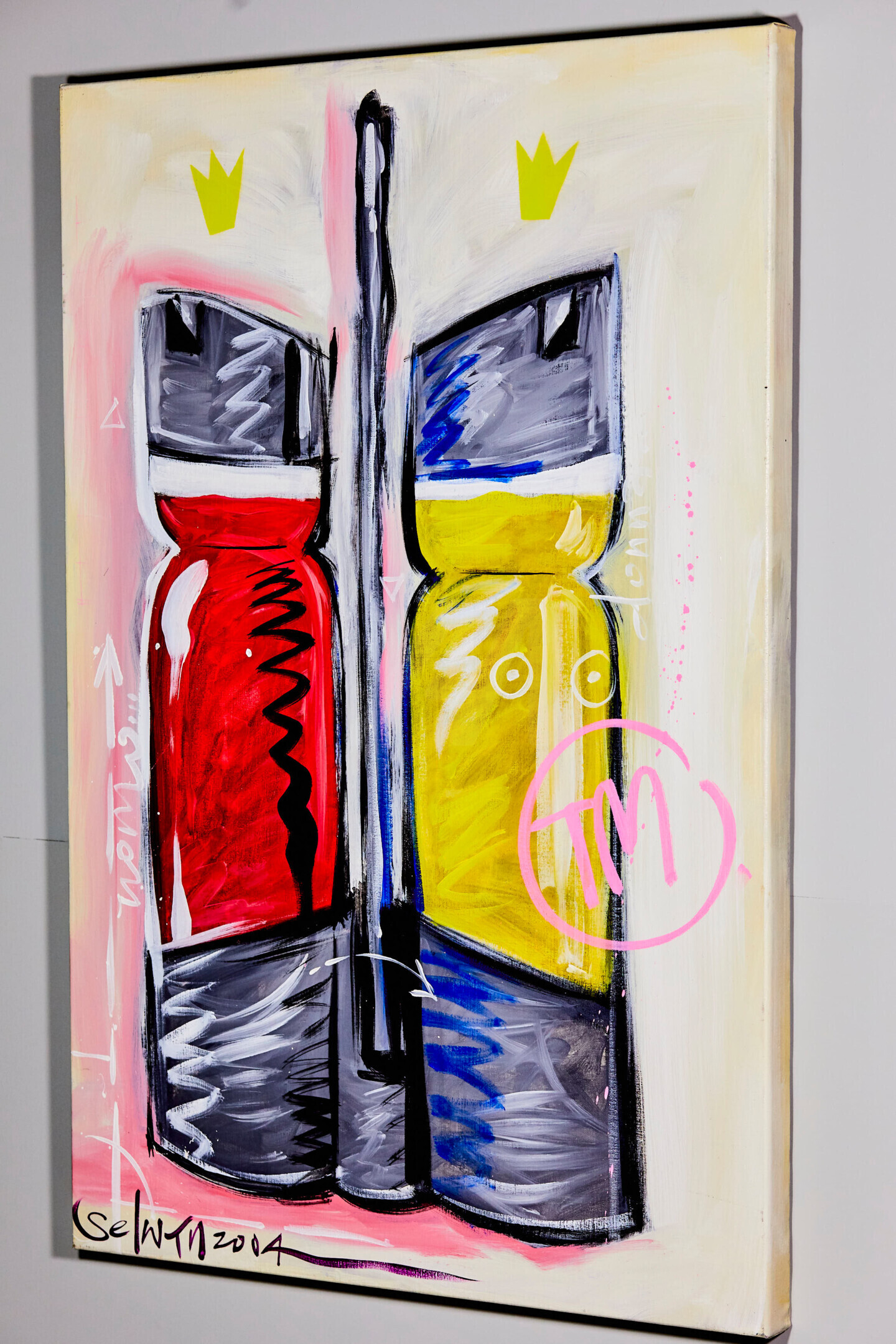 But he could also be seen as a guy in shorts covert with paint, suited with a pair of flip-flops. Selwyn makes art that generates instant happiness. His art is a melting pot of Italian scoundrels, Amsterdam, food, drinks, expensive cars and parties.