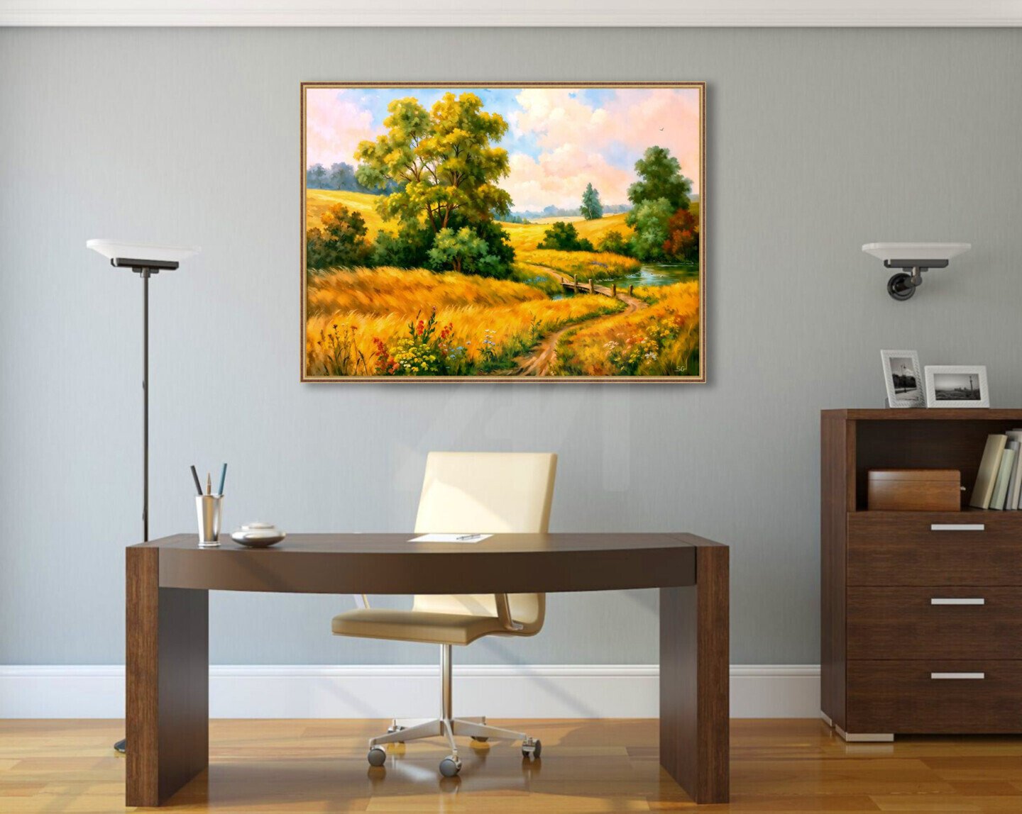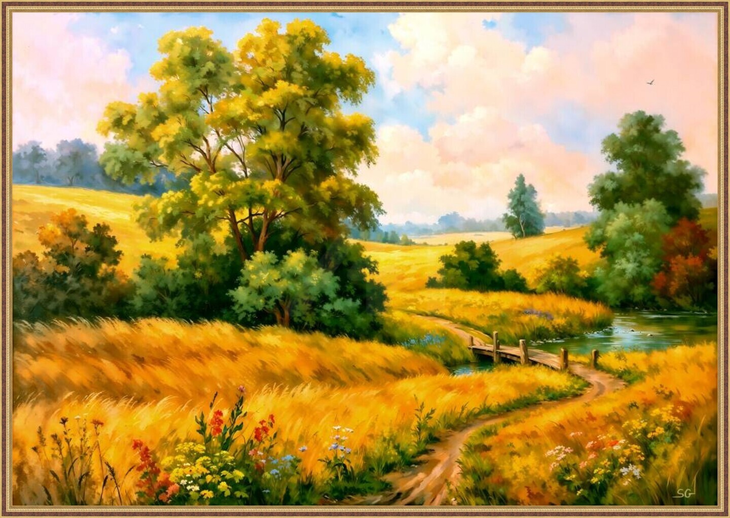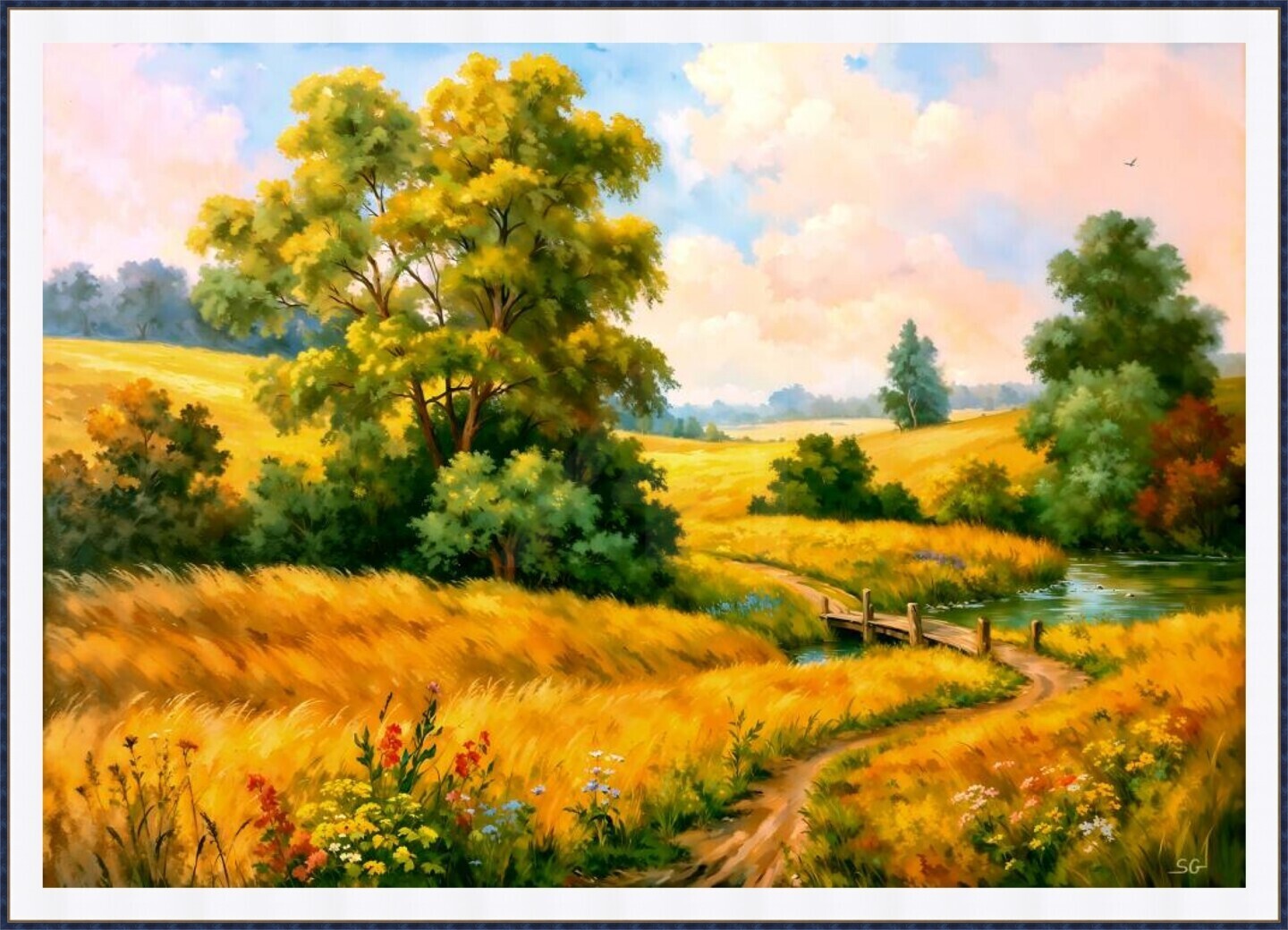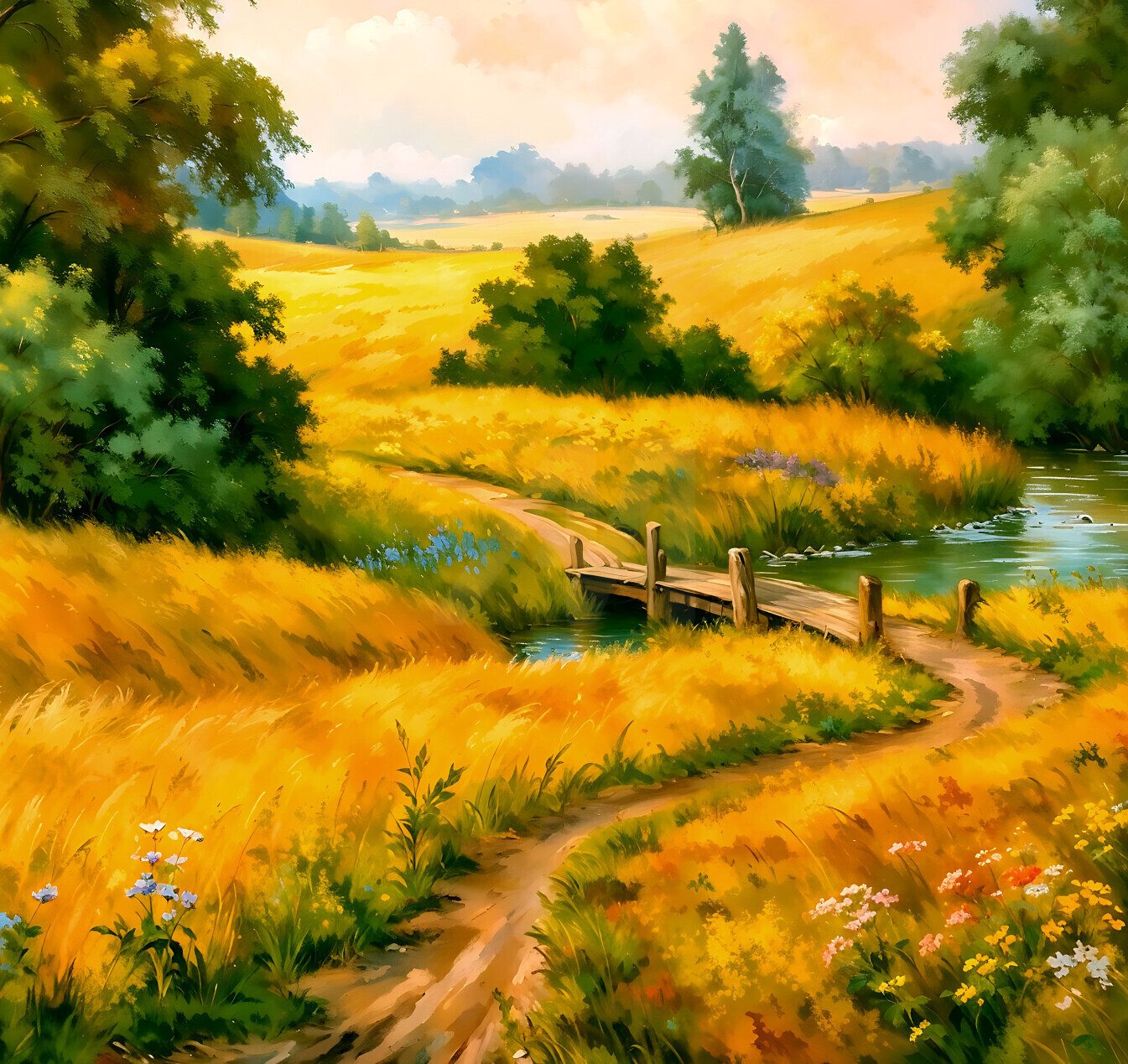 Bank dzieł sztukiSummer FieldsGolden WheatWildflowersCountryside PathRural Bridge