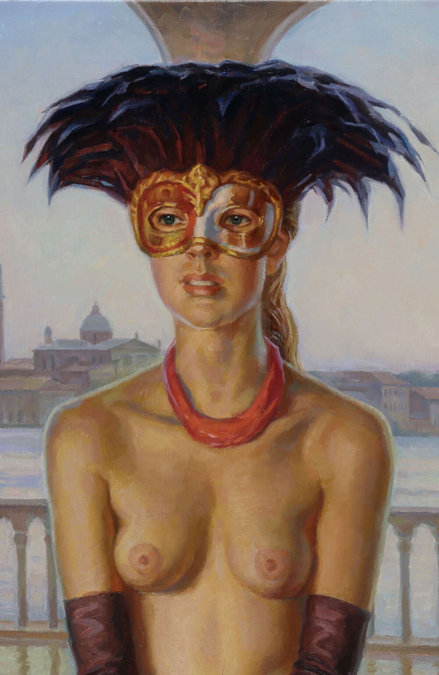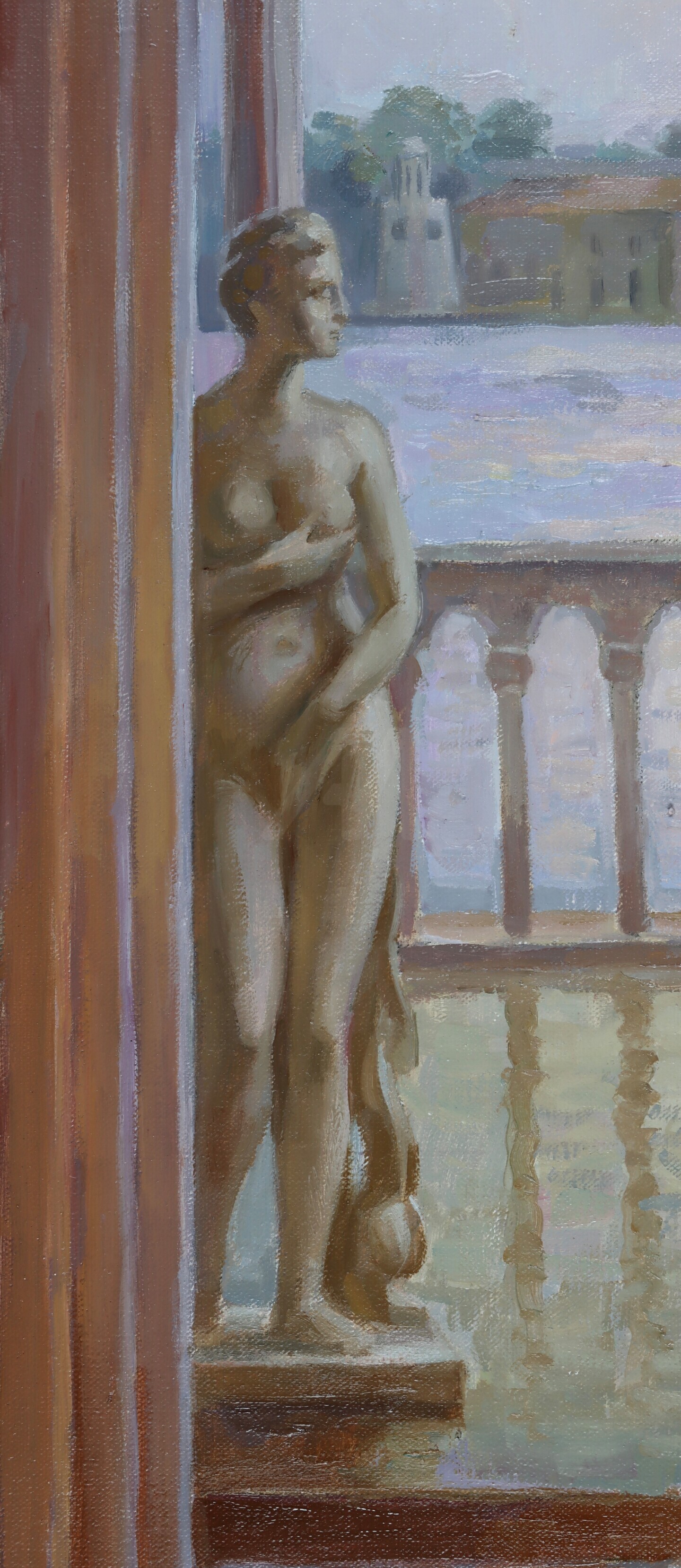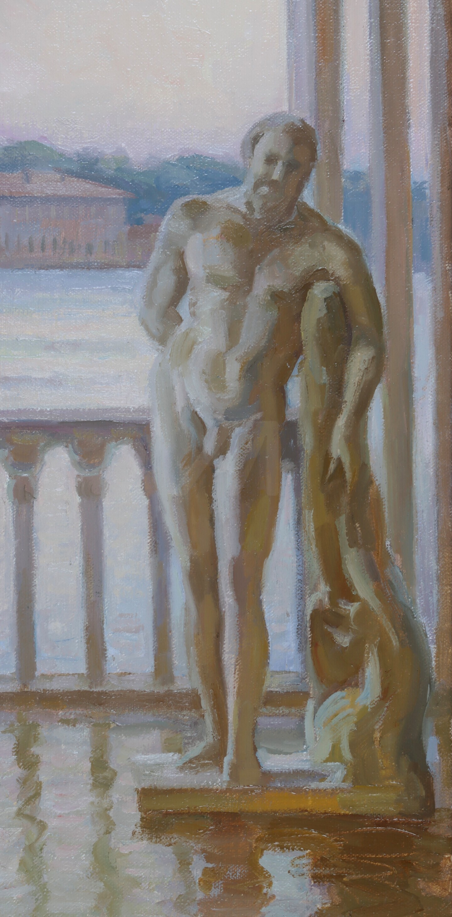 A classically trained artist, Serguei draws inspiration from a great magnitude of subjects, resulting in his painting a wide range of themes. His work encompasses detailed topographical studies, ballet rehearsals and performances, metaphorical figurative works and the occurrences and characters surrounding him. Most of his painting activity focuses on the use of oils on canvas or board, although he often works in watercolour, pastel and clay. His mastery of every technique affords him an overall creativity in each genre. Out of his huge artistic corpus, we can begin by highlighting his figurative paintings, with which his work is often preoccupied. In his portraits as well as in his studies of dancers, he has cultivated a complete objectivity, attempting to catch his subjects in poses as natural and spontaneous as those recorded in action photographs. Extensive academic instruction in figurative and life studies has led him to experiment with unusual visual angles and asymmetrical compositions. By capturing the action of the moment, his ballet dancers are depicted in poses that do not attempt to conceal their physical exertions. Instead, he reveals both the concentration and potency necessary in each performance, whilst drawing attention to the dancers’ elegance and regal poise.