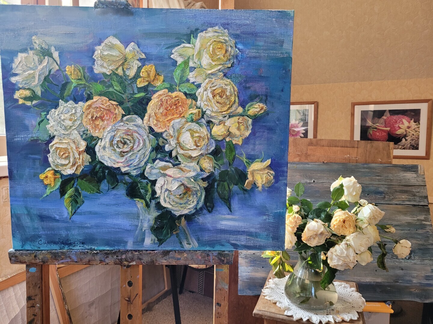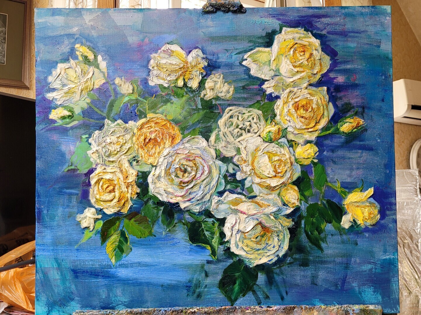Sanat resim bankasıWhite Roses PaintingOil Painting FlowersFlowers On CanvasOriginal Painting RosesOil Painting 60X70