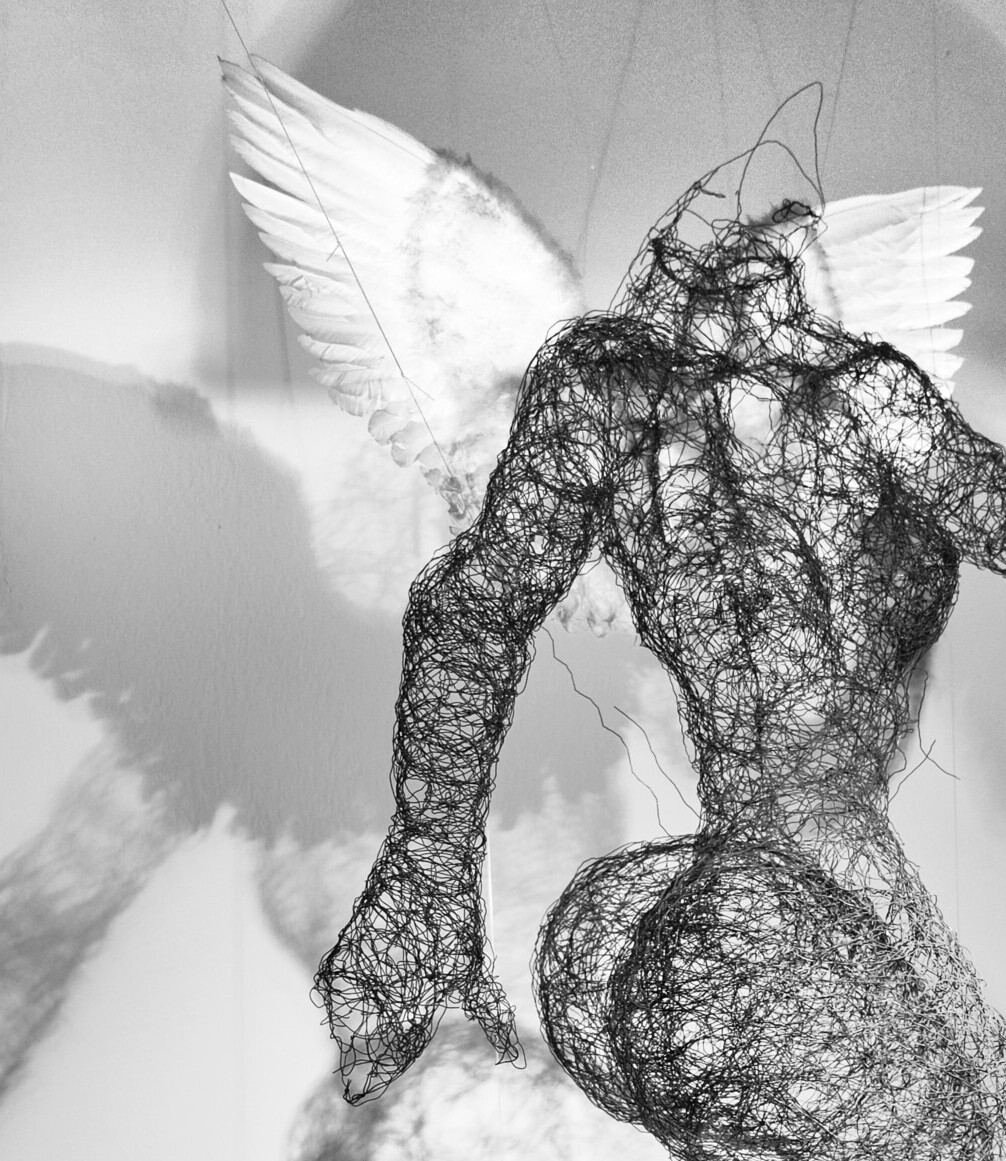 Aus Draht schafft sie Skulpturen, die sich durch Licht, Luft und Raum ständig verwandeln und deren Schatten neue Abbilder auf Wand und Hintergrund entstehen lassen. So schafft sie Kunst in vier Dimensionen. Ausdruck und Stimmung können eingefangen werden. Sind es Schatten, die die Skulpturen an die Wand werfen, oder sind es Zeichnungen?