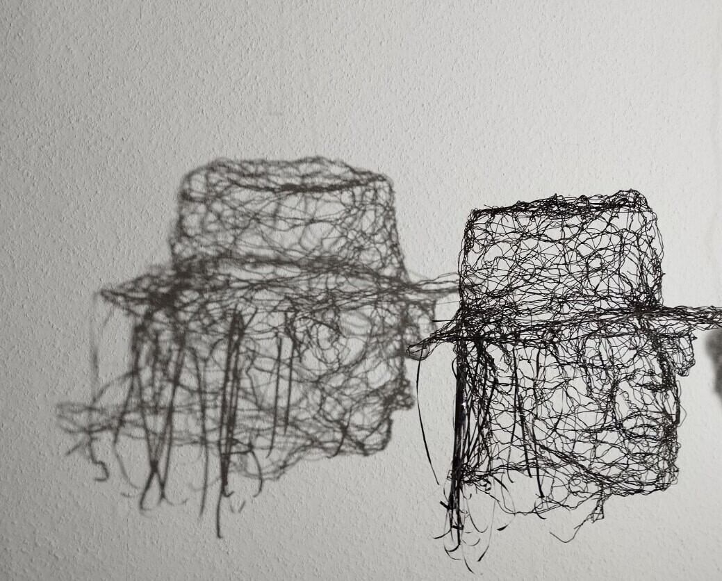 Aus Draht schafft sie Skulpturen, die sich durch Licht, Luft und Raum ständig verwandeln und deren Schatten neue Abbilder auf Wand und Hintergrund entstehen lassen. So schafft sie Kunst in vier Dimensionen. Ausdruck und Stimmung können eingefangen werden. Sind es Schatten, die die Skulpturen an die Wand werfen, oder sind es Zeichnungen?