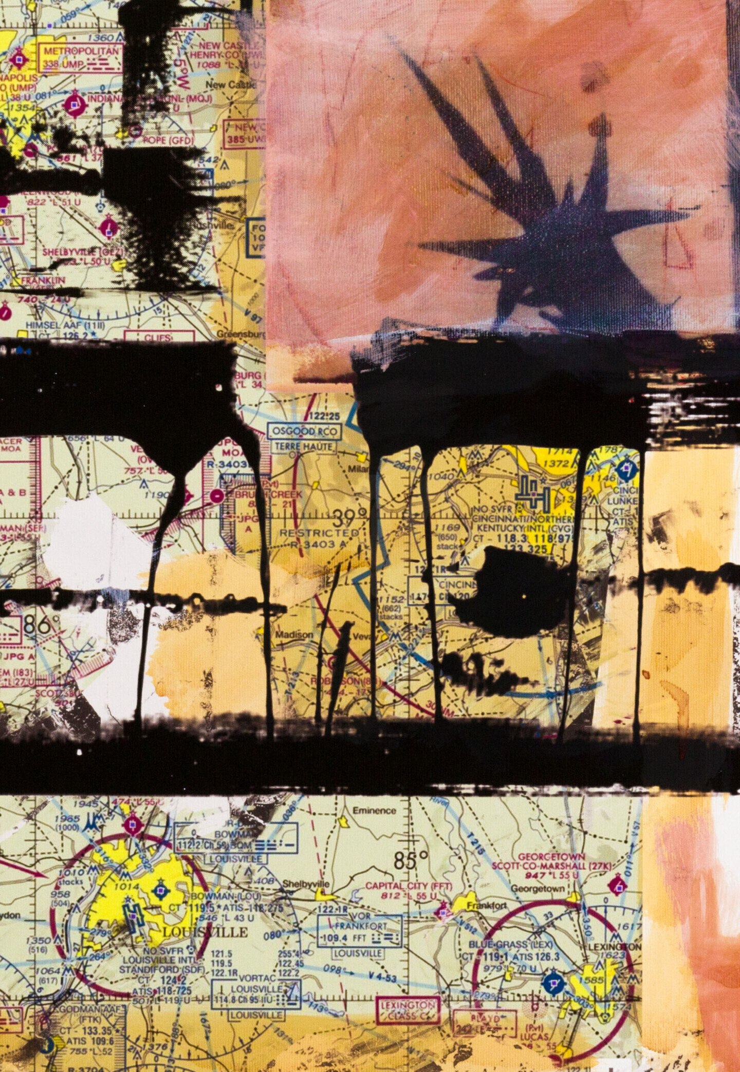 Jakubith 采用混合媒介创作:他将自己的旅行照片进行数码处理,大幅面打印,然后再以油画、拼贴和丝网印刷等形式进行重新创作。这创作出的作品融合了数字和模拟技术,将运动、记忆和转变视觉化。