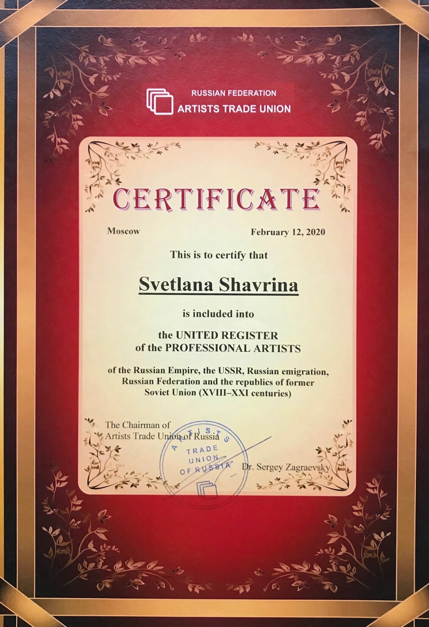 Svetlana is an Eastern Europe painter based in Dubai, UAE with over 15 years of artistic experience. She is a member of the Artists Trade Union. She has sold over 100 pieces of art work all over the world (UK, New Zealand, Switzerland, US, Cyprus, Canada, Ireland, etc…)