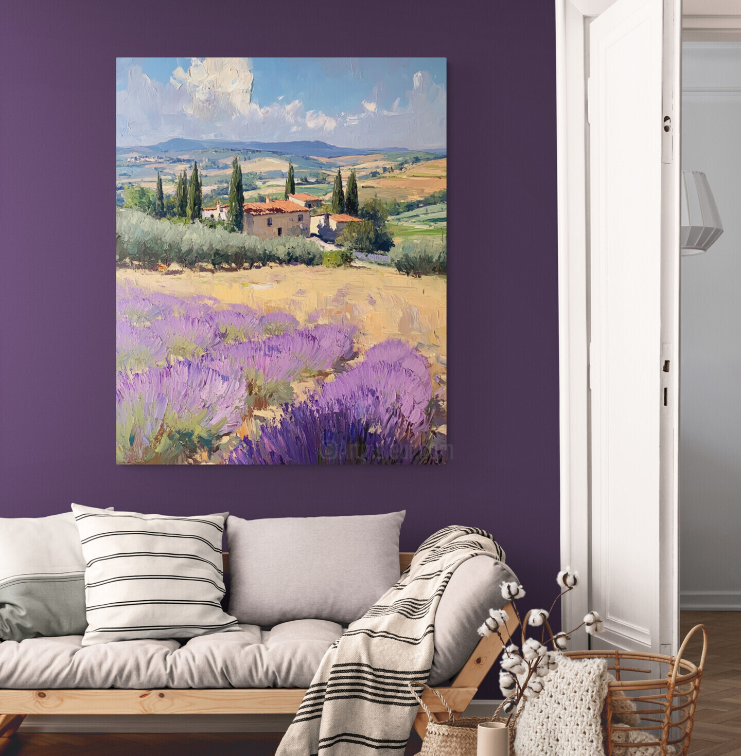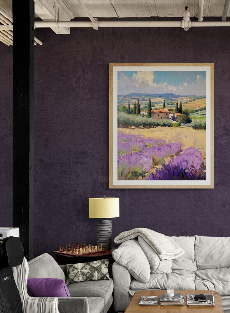 Banque d'images artistiquesTuscany Oil PaintingLavender FieldItalian LandscapeMediterranean DecorCountryside Wall Art