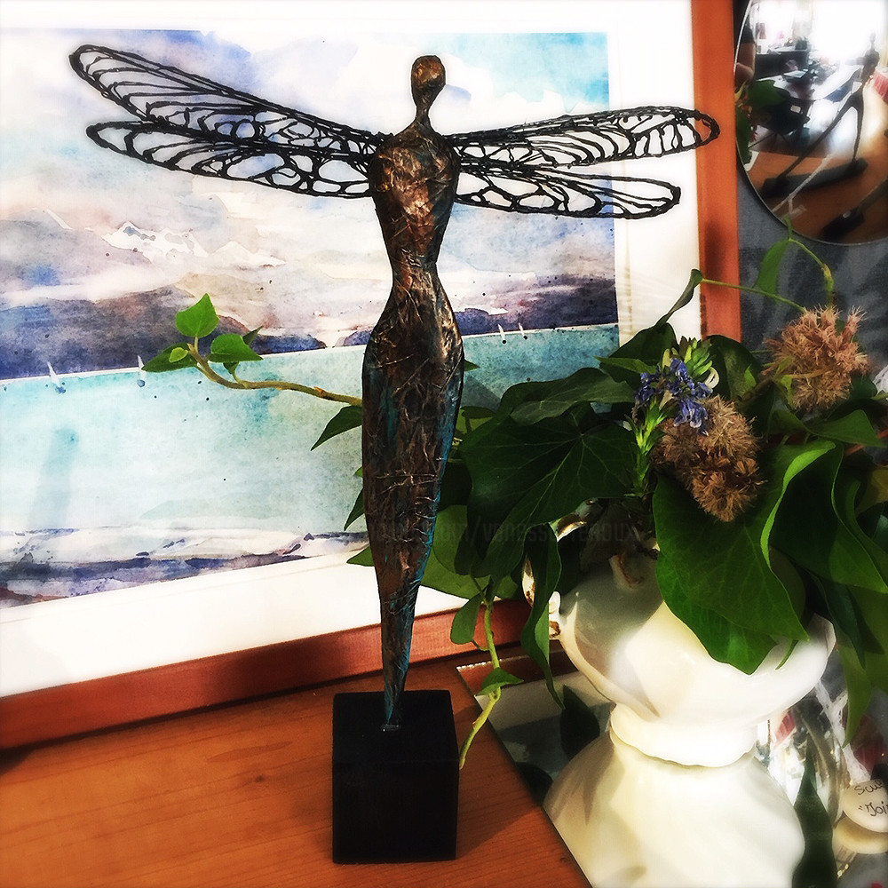 Vanessa Renoux, çelik çubukları ve kompozit malzemeleri birleştirerek karma teknik heykeller yaratıyor. Dokulu boyalı ve patineli yüzey bronz görünümüne bürünür.