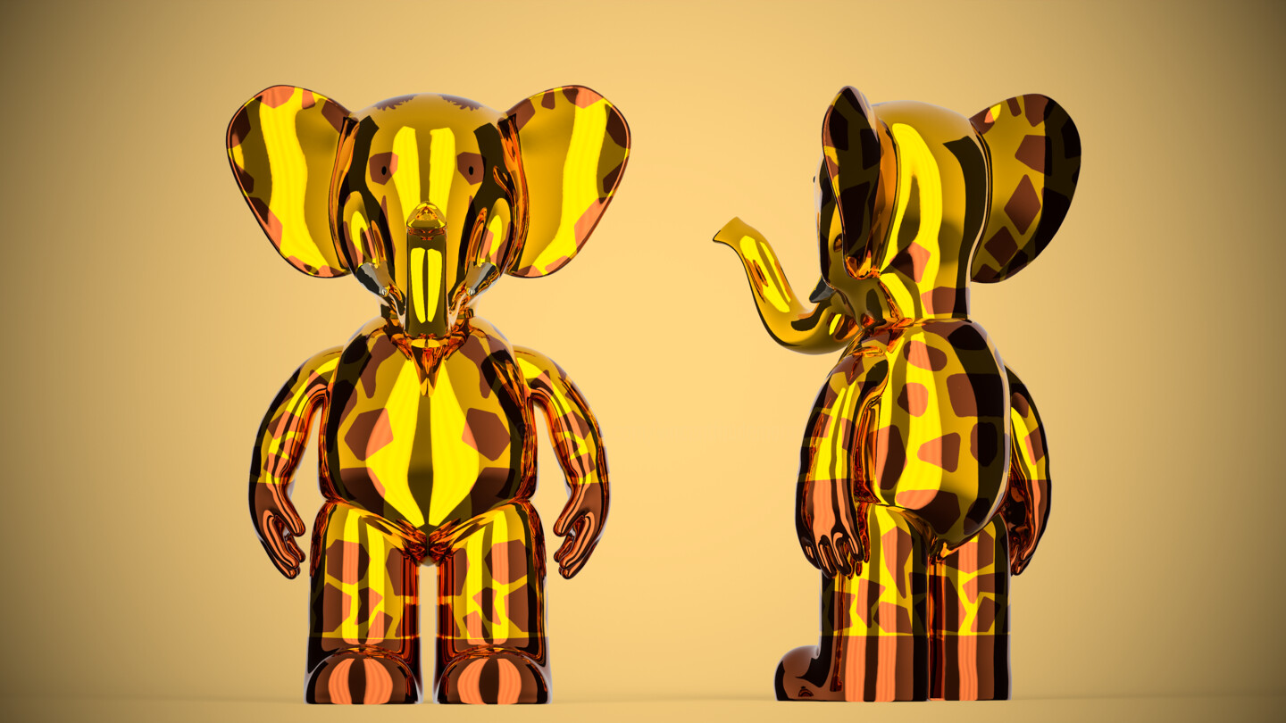 他为他的角色 Babolex 赋予了一件名牌、高端的奢侈品来穿戴,仿佛代表了全球富裕消费者的文化。艺术家选择的大象Babolex,完美地体现了纯洁与童年的对立,以及向成年的过渡和价值观的转变。大象是非洲的支柱,是宗教信仰中智慧和知识的源泉,也是许多文明的神灵。