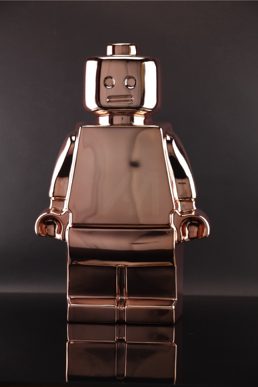 La série « Roboclusion » explore l'intégration de figures emblématiques de la culture populaire dans des sculptures en résine. Cette œuvre met en scène un personnage en forme de LEGO, symbolisant la fusion entre l'art contemporain et les jouets de l'enfance. Les œuvres jouent avec la transparence et la réflexion, créant des effets visuels intrigants et invitant à réfléchir sur la valeur et la perception des objets du quotidien.