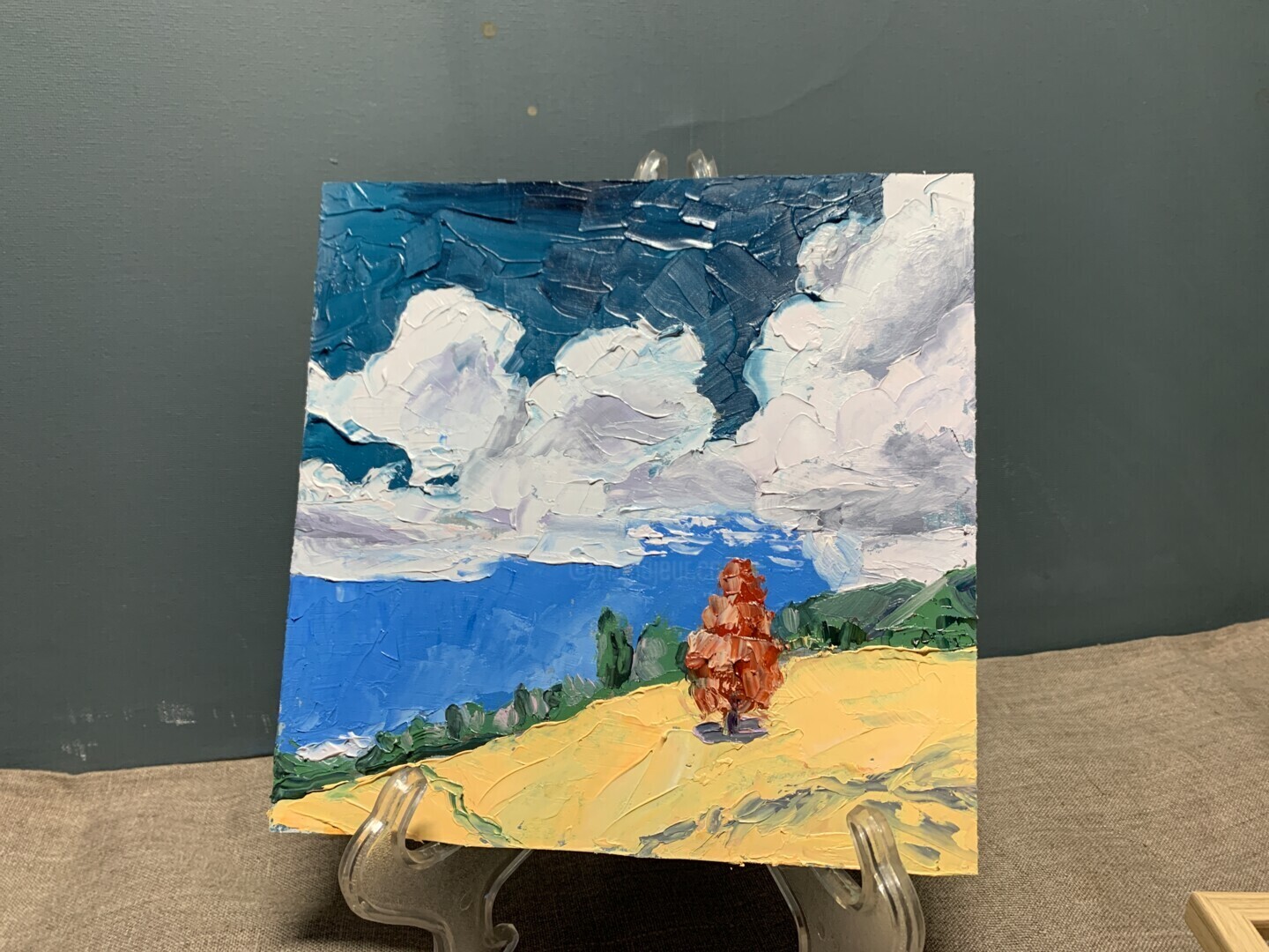 Art image bankVita Schagen is a contemporary Dutch painter. Schagen focuses on paradoxical topics in her artwork, which she enjoys conceptualizing before transferring to the canvas. She sketches that chaotic first layer while she is painting, and the oil paint then instructs her on what strokes to apply next. The artist would describe her aesthetic as rather impressionist. In order to be more flexible and free to create vibrant, thick layers of paint, she prefers to use a palette knife rather than a brush. She is directly expressing her feelings onto the painting in this way.
