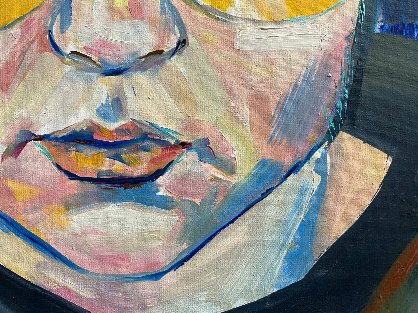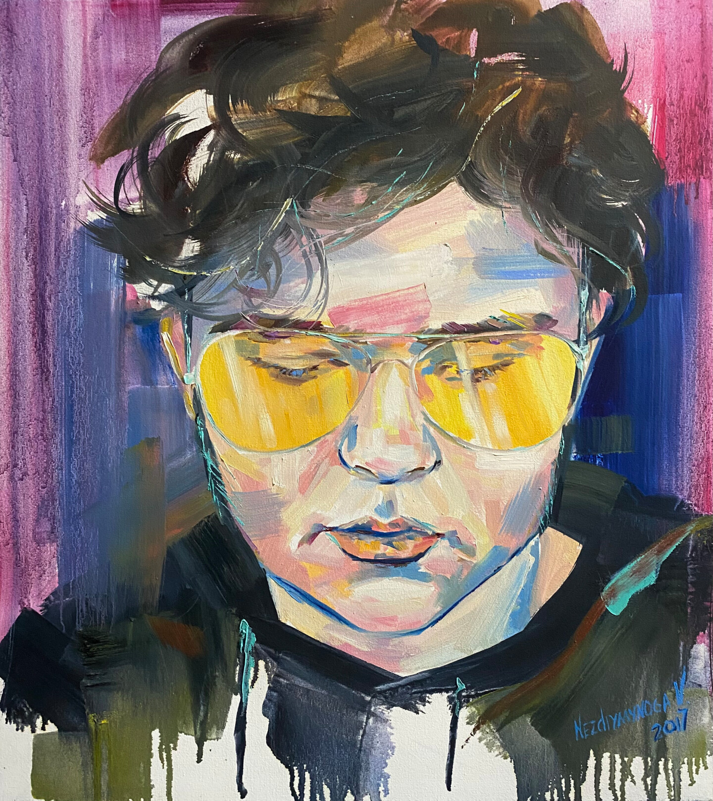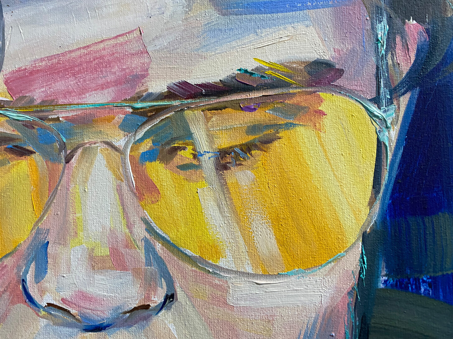 Kunst BilddatenbankPortrait PaintingModern Portrait ArtExpressive Brushstroke PaintingYellow Glasses PortraitAbstract Background Portrait